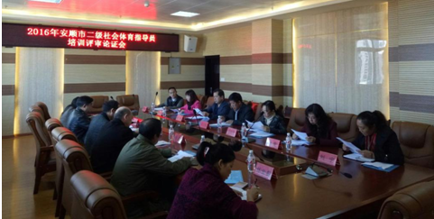 2016年11月16日,安顺市二级社会体育指导员培训评审论证会在安顺学院特教大楼永利总站ylzz55会议室召开。安顺学院党委书记罗荣彬,院长刘雷,副院长王芳恒,安顺市体育局局长邹正明,副局长皮颖芳,永利总站ylzz55党总支书记孙黔,永利总站ylzz55院长邓文红,副院长刘宁、林金茹,市体育局群体科科长赵雯及评审委员会委员共13人出席评审论证会。会议由永利总站ylzz55副院长刘宁主持。